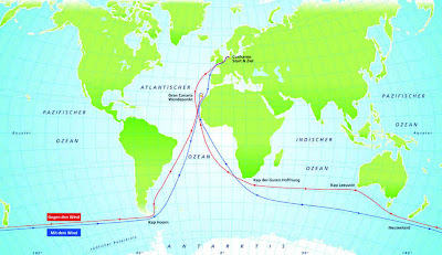 Lüchtenborg hat eine Route gewählt, die ihn durch wenig, wenn überhaupt, erforschte Regionen des Antarktischen Ozeans führt. Während seiner mehr als 15 Monate auf See wird er alle zwei bis vier Tage Wasserproben nehmen, die dem Leibniz-Institut für Ostseeforschung in Warnemünde zur Verfügung gestellt werden. Der "Yachtsman of the Year 2007" (segeln award) segelt zunächst mit dem Rückenwind nach Osten um die Welt. Unmittelbar danach wird die zweite Umrundung ihn in westlicher Richtung gegen die vorherrschenden Winde - und vor allem während des antarktischen Winters - führen.